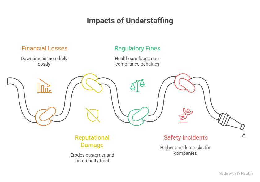 - Safety Incidents: Energy, utility, and transportation companies face higher accident risks when understaffed.