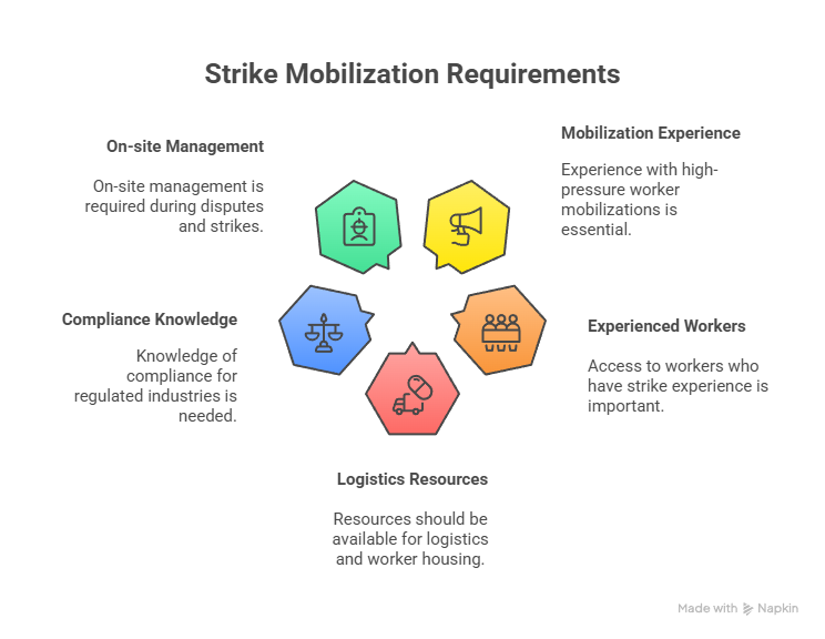 - On-Site Supervision: Having strike supervisors embedded with teams ensures replacement staff can ask questions and adapt quickly. This oversight is especially vital in regulated industries like healthcare or aviation.