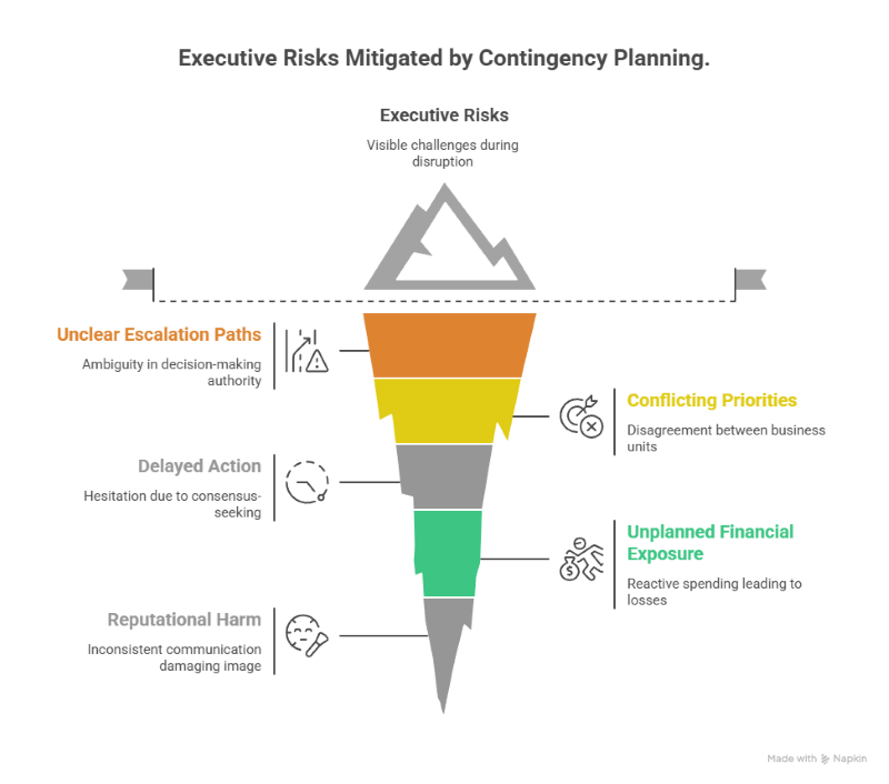 Each risk reflects a failure of preparation rather than capability. Contingency planning preserves executive judgment when conditions are least forgiving.