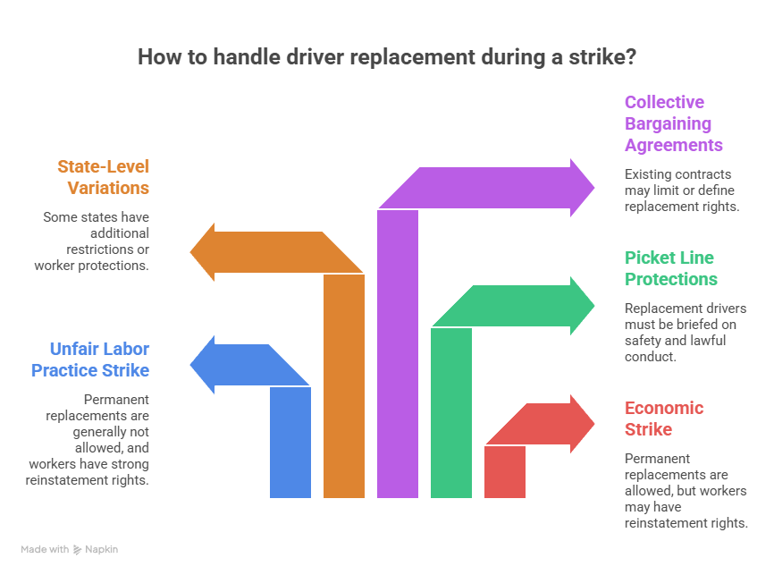 The use of replacement drivers influences long-term workforce dynamics. Even when legally permissible, it can alter trust, negotiation leverage, and employee sentiment.